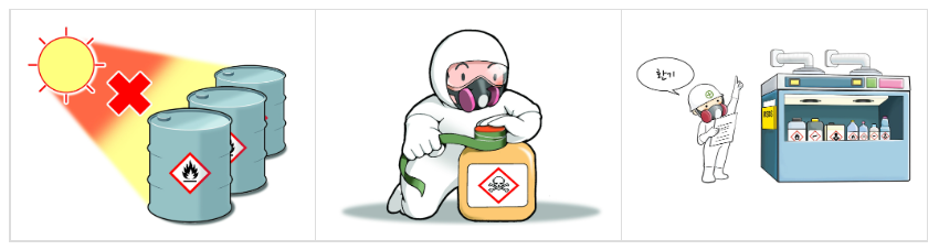 현장에서 근로자들이 사용할 때에는 해당 물질을 취급할 때 어떻게 행동해야 될까?