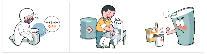현장에서 근로자들이 사용할 때에는 해당 물질을 취급할 때 어떻게 행동해야 될까?