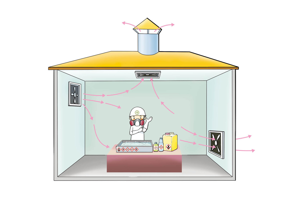 2) 먼지, 흄, 또는 미스트를 발생하는 경우 환기 실시