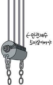 1] 항타기나 항발기에 도르래나 도르래 뭉치를 부착하는 경우, 부착부가 받는 하중에 의해 파괴될 우려가 없는 브라켓 / 샤클 및 와이어로프 등으로 견고하게 부착.