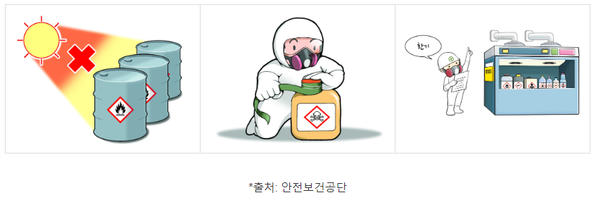 현장에서 근로자들이 사용할 때에는 해당 물질을 취급할 때 어떻게 행동해야 될까?