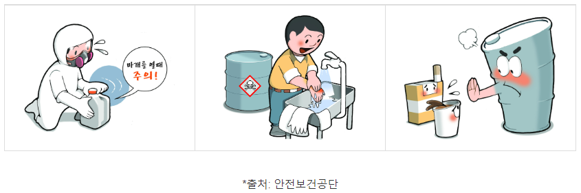 현장에서 근로자들이 사용할 때에는 해당 물질을 취급할 때 어떻게 행동해야 될까?