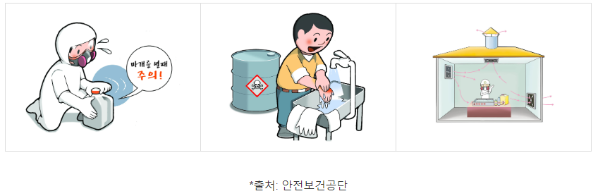 현장에서 근로자들이 사용할 때에는 해당 물질을 취급할 때 어떻게 행동해야 될까?