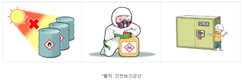 현장에서 근로자들이 해당 물질을 사용하고 난 후에는 어떻게 저장해야 될까?