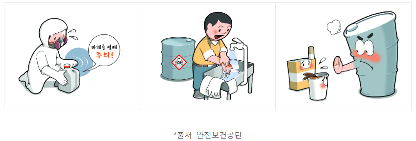 현장에서 근로자들이 사용할 때에는 해당 물질을 취급할 때 어떻게 행동해야 될까?