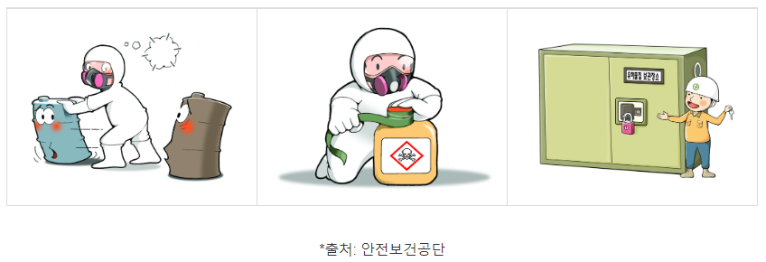 현장에서 근로자들이 해당 물질을 사용하고 난 후에는 어떻게 저장해야 될까?