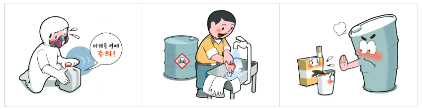 현장에서 근로자들이 사용할 때에는 해당 물질을 취급할 때 어떻게 행동해야 될까?