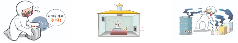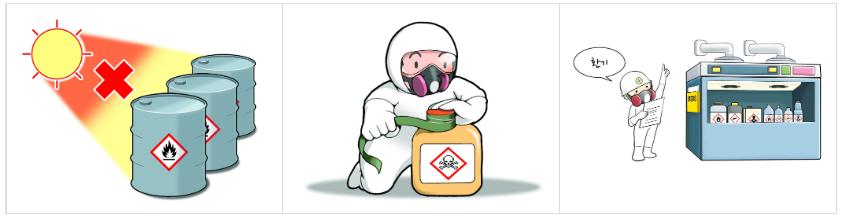 현장에서 근로자들이 사용할 때에는 해당 물질을 취급할 때 어떻게 행동해야 될까?