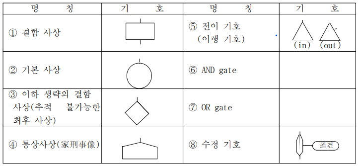 2) FTA 도표에 사용하는 논리기호(*기사시험에기호 관련 한 문제이상 출제)